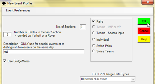 | SCOREBRIDGE/BRIDGEMATE SET UP FOR 2 SECTIONS |
