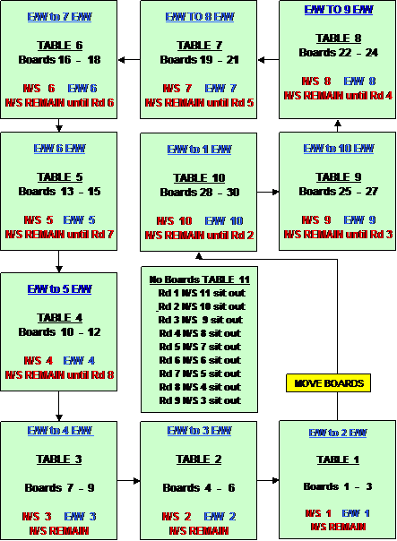 number tables clockwise b) boards move anti-ckockwise |
